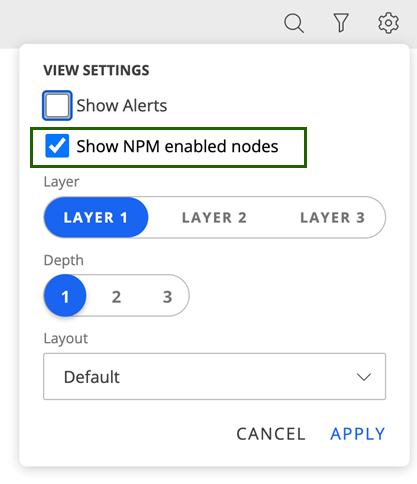 - Go to the topology view and enable Show NPM Enabled Nodes in the settings.