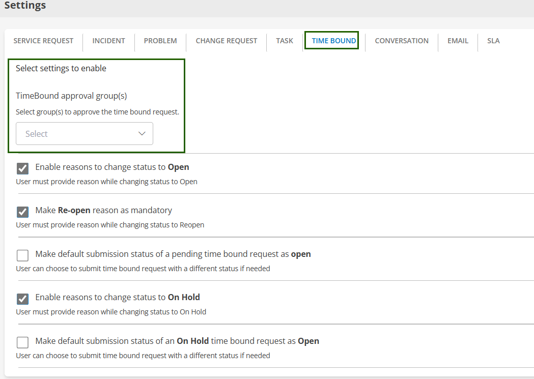 Under the settings section, add one or more user groups as approval groups under TimeBound approval group(s).Only users within these groups will have permission to approve or reject time bound requests.